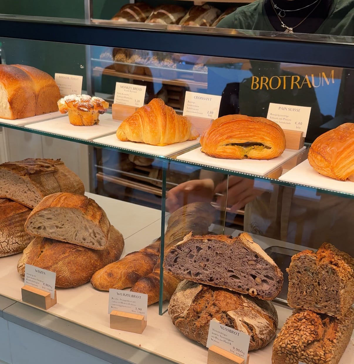 Brotraum is a bakery that embodies a more casual and cozy vibe and serves more viennoiserie products on a daily basis. When i visited, there where a few options on the croissant dough frontier and i decided on the plain croissant to really test the flavor of the dough. Also, they had a cinnamon bun handshaped just as i like to do (you can read about it in my cinnamon bun article). I wanted to see, if my own bakes where as good as a munich bakery’s.