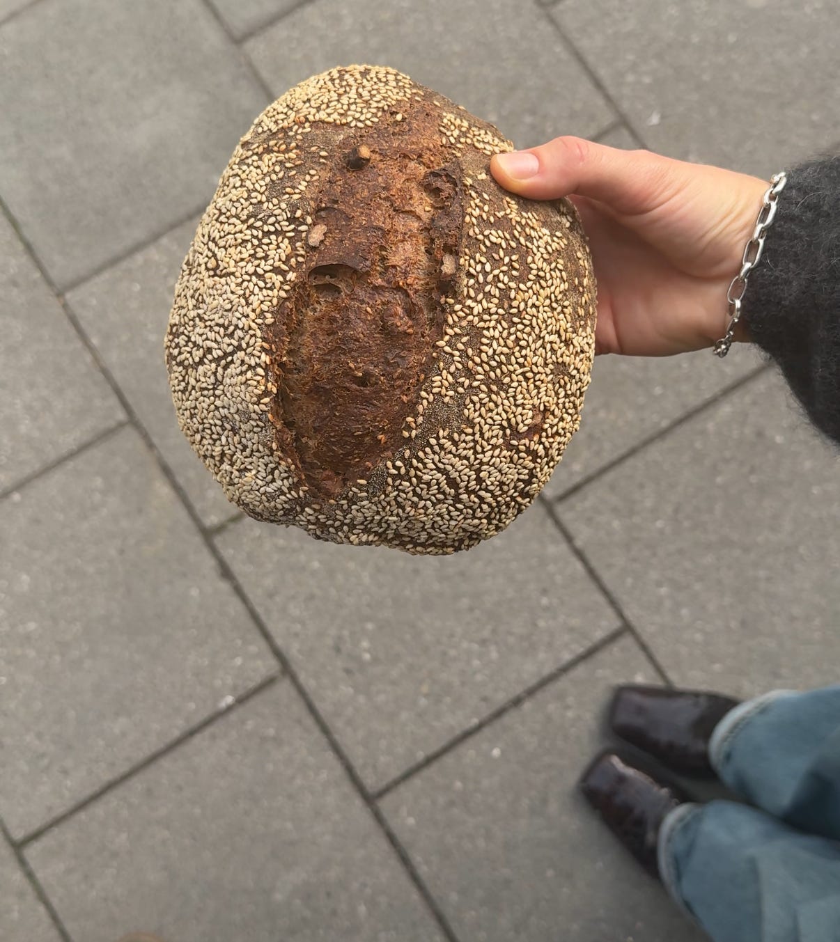 Because i was on the go i ripped open the loaf and tried it on the spot, because it was still warm from the oven and smelled sooo delicious! And not to jump to conclusions too quickly, but this loaf was truly magical. The roasted notes in this loaf tastes nutty and almost like caramell. I think they put some sort of sugar in this because it was really sweet and complemented the rustic roasted flavors so well. I think i will try and bake a loaf like this myself in the future!