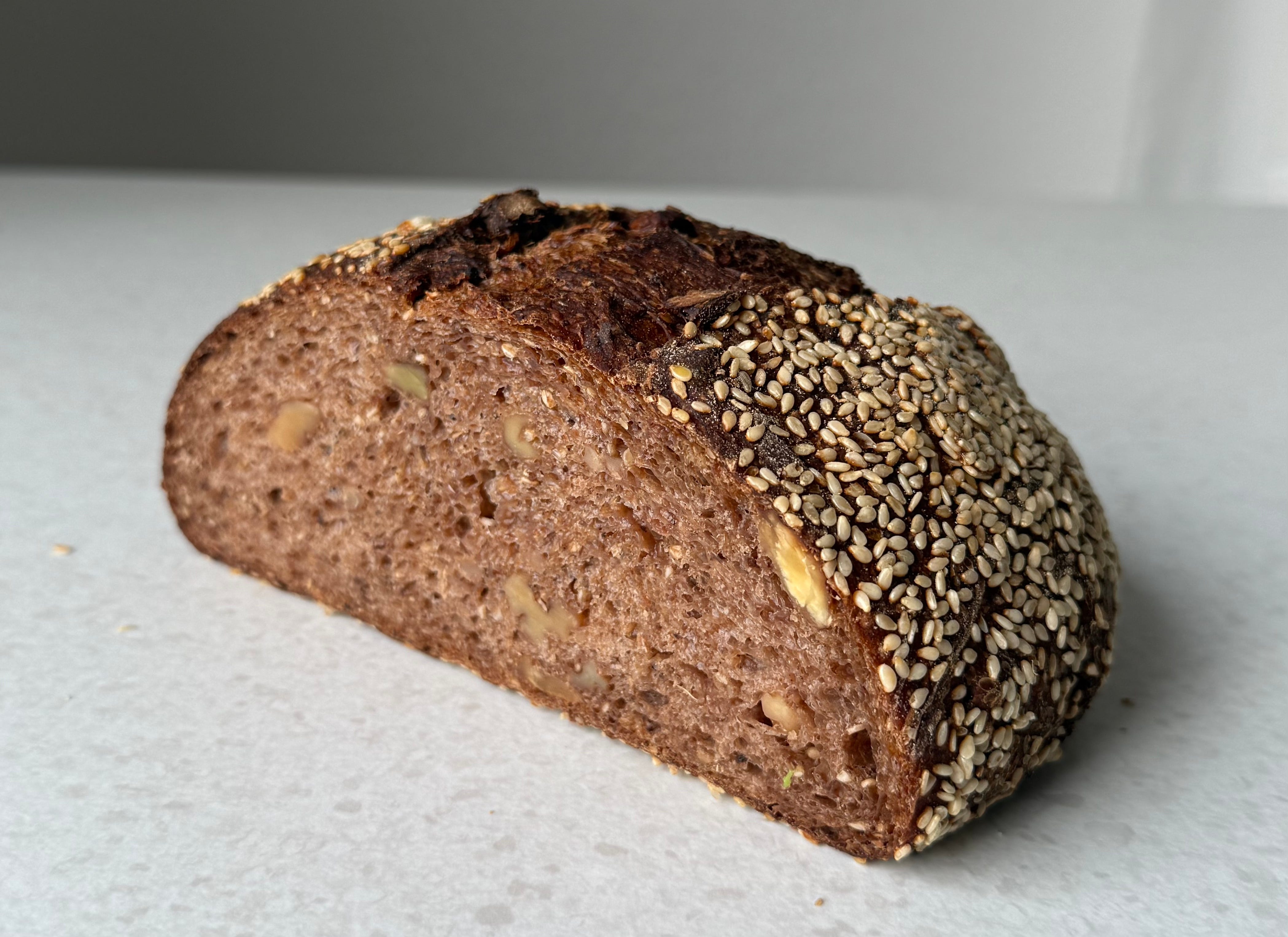 Last but not least, i got to try the special offer of the day which was a rustic roasted sesame and walnut loaf. To me it looked so appealing because i really love anything nutty in baked goods or to be more specific in bread.